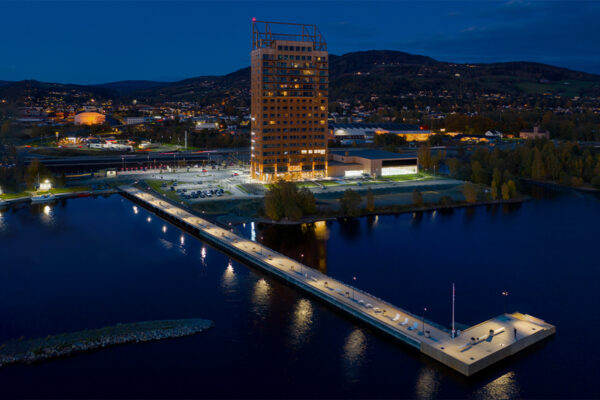 Descubre el nuevo proyecto de alumbrado público de la zona de Ringsaker, una nueva área urbana cercana a la Torre Mjøsa.